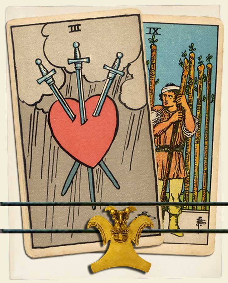 Three of Swords and Nine of Wands combo interpretation