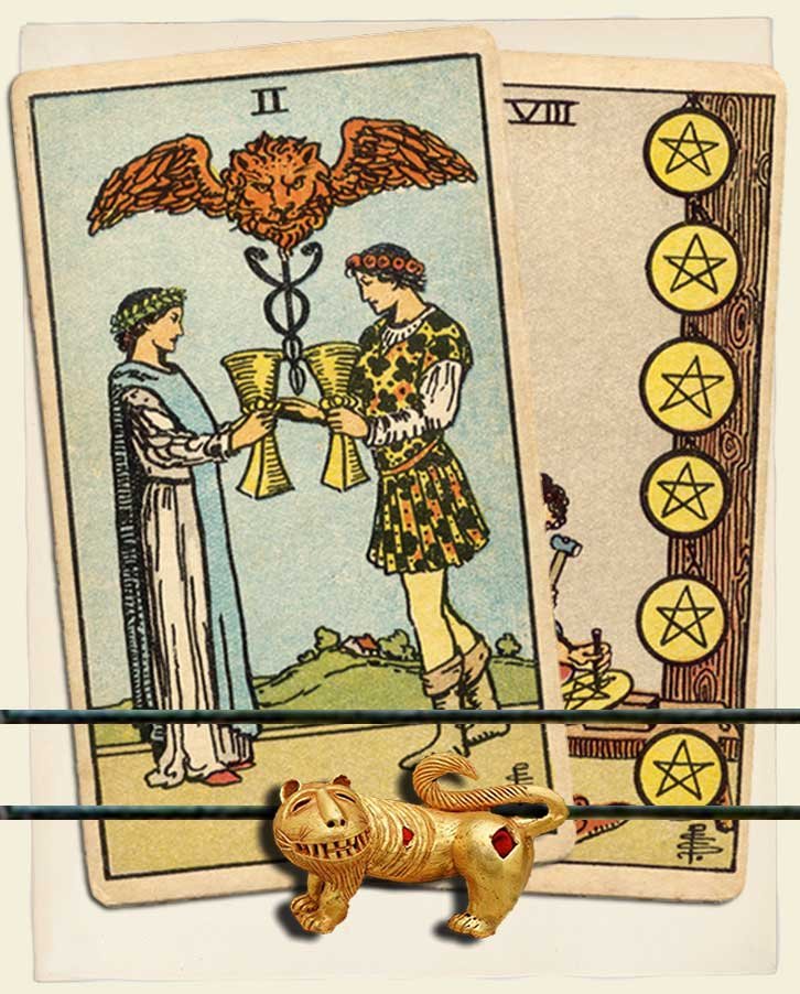 Two of Cups and Eight of Pentacles combo interpretation