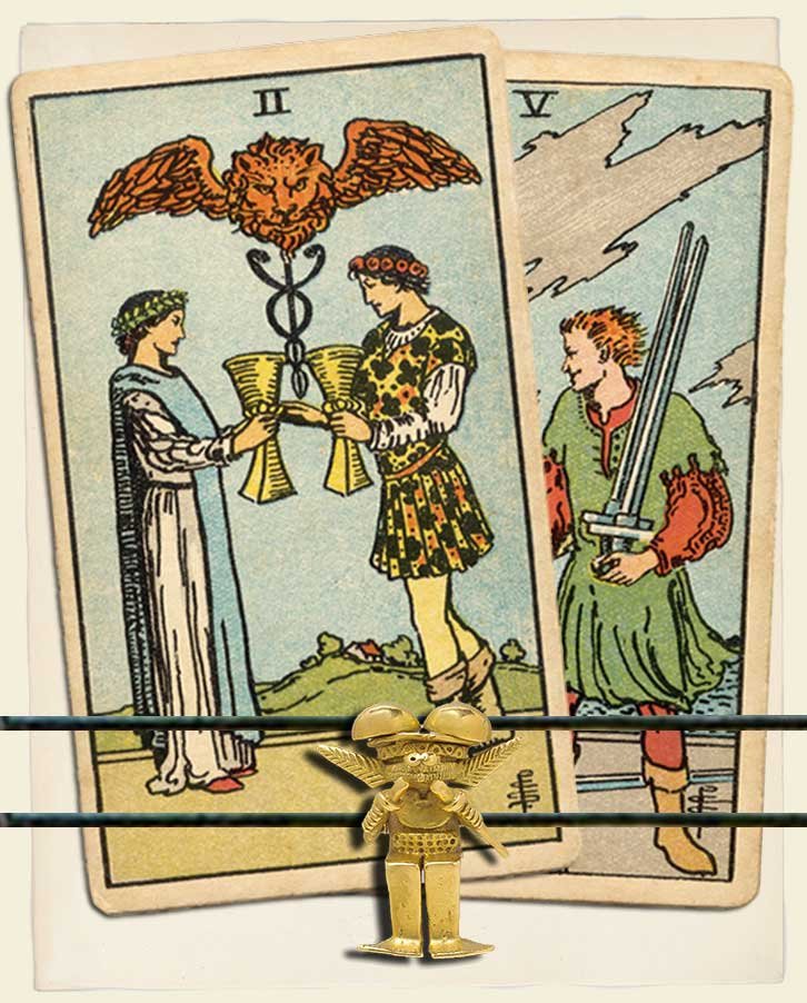 Two of Cups and Five of Swords combo interpretation