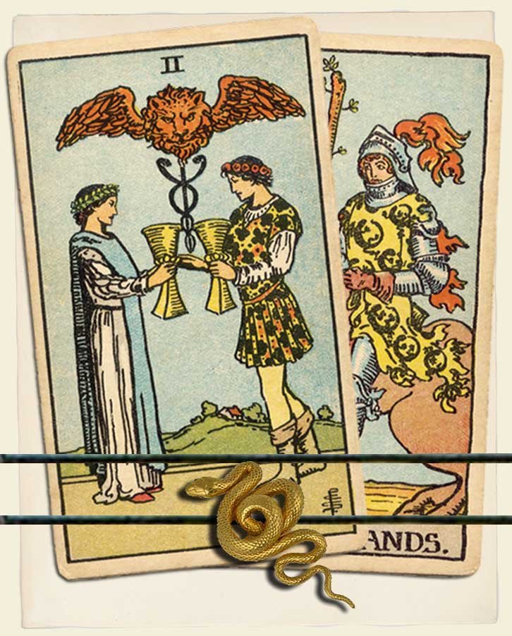 Two of Cups and Knight of Wands combo interpretation