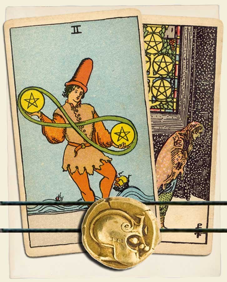 Two of Pentacles and Five of Pentacles combo interpretation