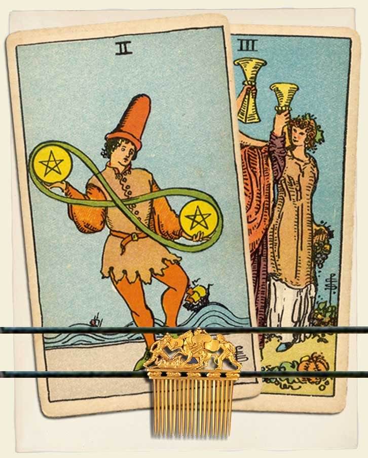 Two of Pentacles and Three of Cups combo interpretation