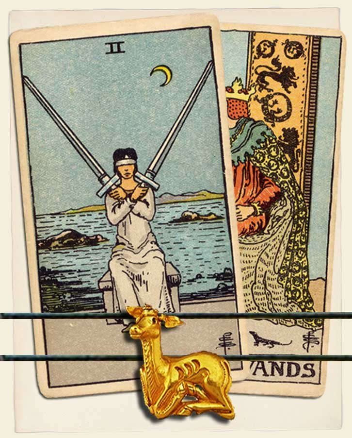 Two of swords and King of wands combo gives an insight into your near future. It is influenced by the tarot forces of (I) An Impasse (from Two of swords) and (II) Natural-Born Leader. What’s the advice of this pair? The Two of Swords represents a difficult situation in which there may be conflict or even hostility between two parties involved. This card indicates that you are at a crossroads, where you have to choose one path over another. The King of Wands represents a confident leader who can take charge and get things done quickly and effectively. He doesn’t tolerate nonsense very well, though, so he might not be the best choice for resolving whatever impasse has developed around here with the Two of Swords present. Still, he will get things moving forward again without causing too much damage.