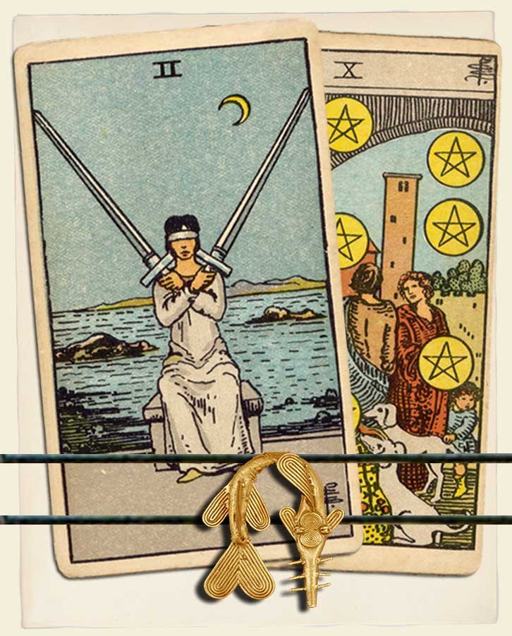 Two of Swords and Ten of Pentacles combo interpretation