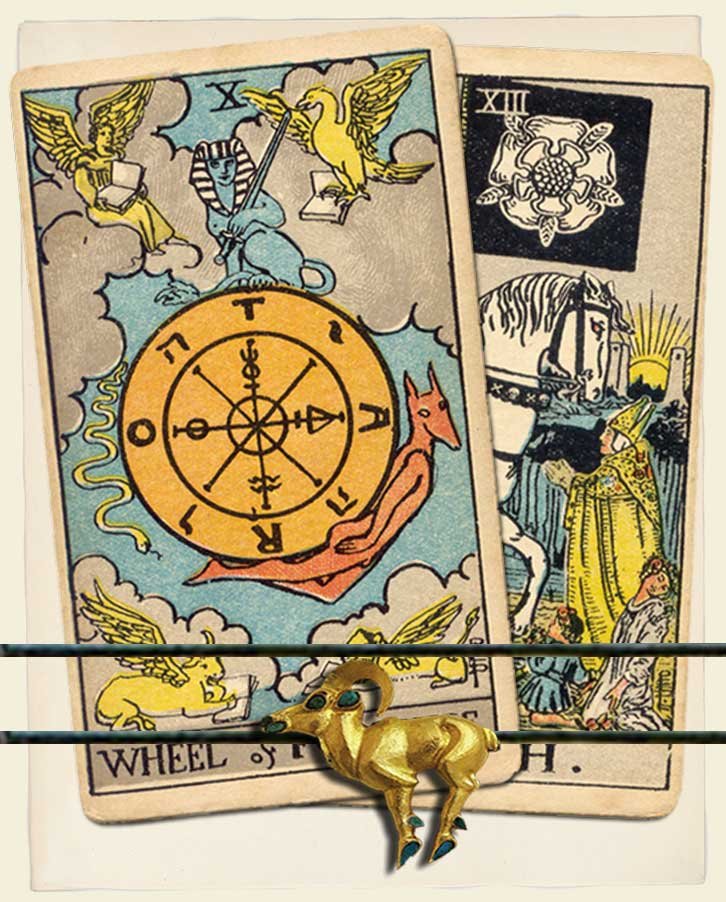 The combination of the Wheel of Fortune and Death in a love or relationship reading can be quite unsettling. The Wheel of Fortune represents cycles, both good and bad, that are out of our control. It suggests that change is coming, but it may not necessarily be positive. On the other hand, Death signifies an ending or transition into something new. While this could mean a fresh start for a relationship, it also means letting go of what was once comfortable and familiar.