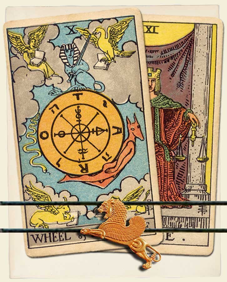 Wheel of Fortune and Justice together gives an insight into an outcome in your future. It is influenced by the tarot forces of (I) CHANGE (from Wheel of Fortune) and (II) JUSTICE. The Wheel has turned, and it is time to face a new direction in your life. New opportunities present themselves as you leave behind what was before, when Justice appears with this card. You may find yourself facing difficult circumstances that require you to make some hard choices, but if you do so with fairness in mind, there will be change for the better even after leaving behind what was before. Just remember that no matter how bad things get, they can always get worse before they get better.
