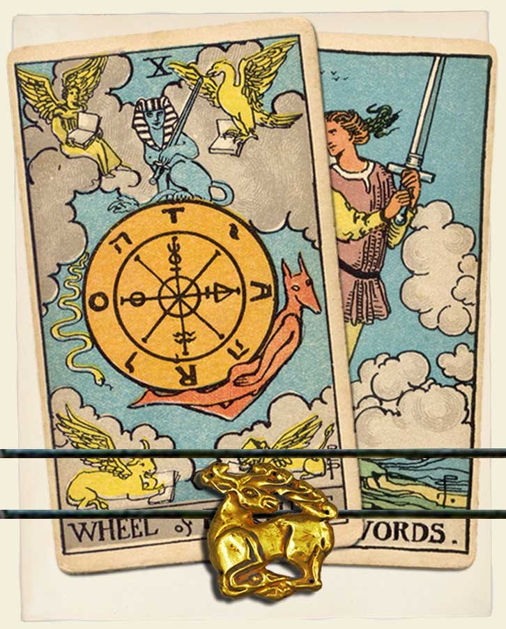 Wheel of Fortune and Page of swords tarot combination gives a hint about your current state and immediate future, which is directed by the guiding influences of (1) Decisive Moments and (2) Thirst For Knowledge (as clarified by Page of swords). Something in the world shifts as questions we have long asked suddenly appear to have answers. You have an epiphany that opens your mind to new and exciting information that you never imagined before. You can feel the rush of surety as you assimilate this insight into your daily life, but be careful. When dealing with the Page of Swords and the Wheel of Fortune, today’s wisdom can be the wisest, most dependable thought you ever had, or it can be tomorrow’s forgotten foolishness. You might not know which for a few days.