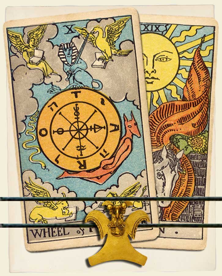 Wheel of Fortune and The Sun combination is an omen that two tarot influences: A) Destiny (Wheel of Fortune) and B) Vitality (The Sun) currently guide your decisions. If this pair appears during your reading, it usually means that there is some sort of joyous occasion or feeling on the horizons. You can expect positive and successful cycles and changes to occur during this time as well if this combination comes up. An inevitable and positive fate will be of significance during this time as well.
