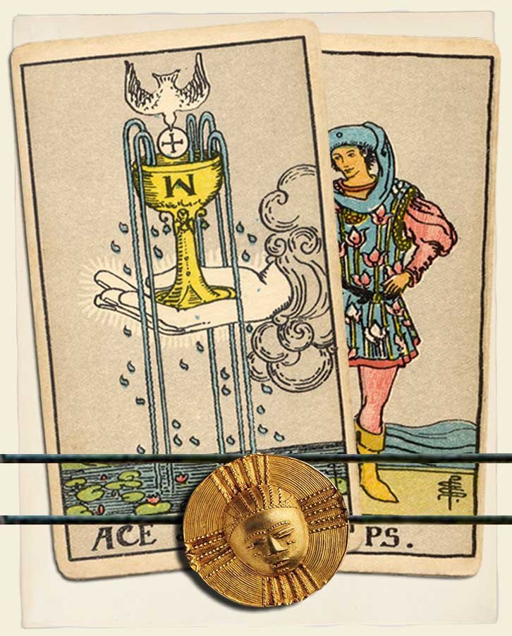 Ah, the Ace of cups and Page of cups combination for love and relationships. What a delightful pair! This tarot duo offers insight into your current state with the influences of new relationships and naiveté. The enchanting Page of Cups holds the red rose of passionate love in his hand, igniting a feeling of wonder and belonging within you.