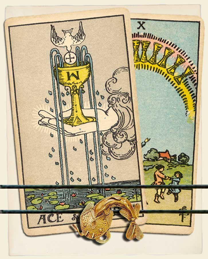 Ace of cups and Ten of cups combination gives a hint about your near future. It is influenced by the arcane tarot forces of (A) LOVE and (B) DIVINE LOVE. What’s the advice of this pair? The Ace of cups represents an emotional new beginning that can lead to love. This card indicates that you may have found someone who will support you emotionally as you start a new life together, perhaps even move in with them soon. The Ten of cups represents union or complete happiness with no more trials left to overcome. If you are waiting for this energy to come into your life, it may be time to take the leap and make things official before Aces become twos again and another opportunity slips through your fingers.