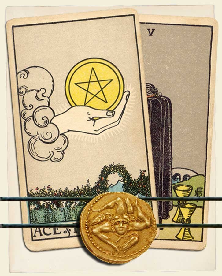 In terms of their individual meanings, the Ace of pentacles has a very positive influence on love. It suggests something concrete that will turn the tables and allow you to profit from your relationship. However, this requires letting go of past burdens and focusing on the present and future with fresh eyes.