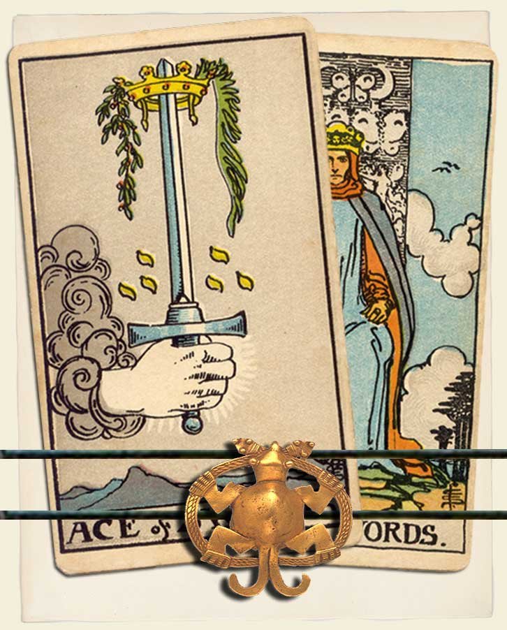 Ace of swords and King of swords combination provides an insight into your medium-term future, which will come to pass from the combined effect of (1) Breakthroughs (effect of Ace of swords) and (2) Authority. To put it simply, it’s becoming clear that no one else can live your life for you. For so long, you’ve depended on the guidance and opinions of others. But these cards indicate a change is coming: the obligation you feel to please is on the wane. And, as you slowly step out of those shackles, you will find the world transformed into a land of unexplored opportunity.