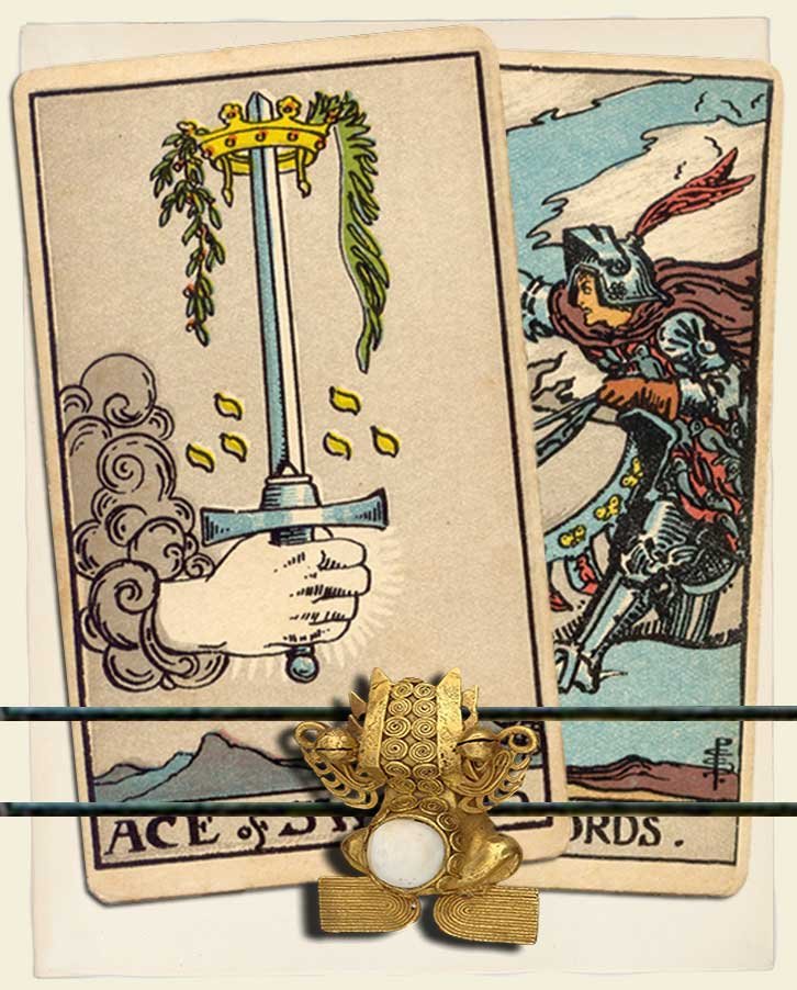 Ace of swords and Knight of swords tarot combination gives an insight into a major event in your future, which is influenced by the forces of Breakthrough and Focused. If this combination appears during a reading, it can usually be interpreted that some sort of action will be causing a breakthrough soon or during that time. A person may have to use their sharp mind to defend their beliefs during the time if this match appears. Using impulsiveness to receive clarity on a situation may be of significance during the time that this pair appears as well.