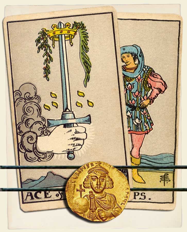 Ace of swords and Page of cups tarot combination means that mystic tarot forces: A) Breakthrough (Ace of swords) and B) Dreamer (Page of cups) currently guide your decisions. To put it differently, it means you have been envisioning a future of greatness for some time now. The Universe notices your persistence and aspiration and will guide you towards the first leap in achieving your goals. Don’t expect everything to happen at once. If you get eager too quick, you will wind up disappointed. Instead, brace each breakthrough with gratitude and kindness, and more will follow.