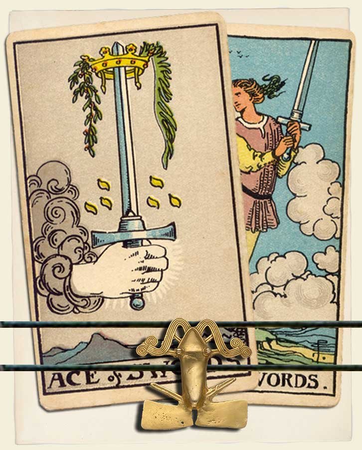 When the Ace of swords and Page of swords appear together in a love reading, it is considered a favorable sign. The combination suggests breakthroughs and vigilant decision-making guided by signs around you. It also indicates the presence of mentors or teachers who can provide insight on how to reach your goals.