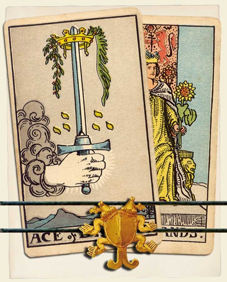 Ace of swords and Queen of wands combination means that two forces: I) Success (Ace of swords) and II) Determination (Queen of wands) currently guide your decisions. How to interpret this tarot combination in practice? The Ace of Swords indicates a new beginning after which success can be expected. There is something you must do, but it requires some courage. The presence of the Queen of Wands indicates that you are well-equipped for whatever task lies before you. Whatever happens next will likely stem from your determination to succeed, so don’t let fear hold you back. This pair also advises against being too hasty with any rash decisions made under the influence of the Ace of Swords – think things through carefully first.