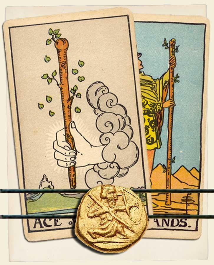 Ace of wands and Page of wands combination means that two tarot influences: 1) ENERGY and 2) CHEERFULNESS guide your life decisions today. You have a lot to be cheerful about right now, but don’t let it go to your head. The Ace of Wands is the most exciting card in the Tarot, so you may feel like everything is happening at once, but take it one step at a time. There are opportunities knocking on every door you open with this pair. Don’t ignore them or they will slip away forever. Take advantage while you can.
