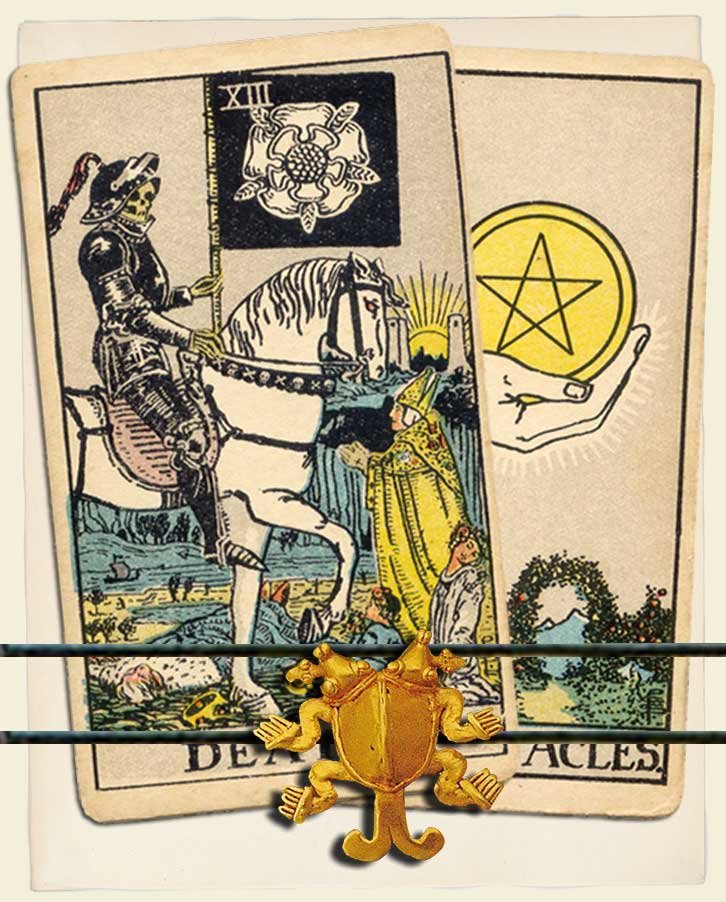 Death and Ace of pentacles tarot combination means that tarot influences: (1) Endings and (2) Abundance (as influenced by Ace of pentacles) have influence on you today. You’ve been experiencing a period of prosperity in which the universe seemed to flow endlessly in your favor, but Death reminds you that all things must eventually draw to a close. Your luck will eventually run its course, and it’s time to begin preparing for whatever comes next. Instead of spending your money lavishly, invest. Instead of reaching for new relationships, strengthen old ones.