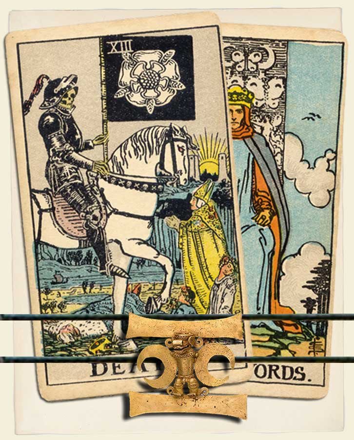 Death and King of swords combination gives a clearer perception about your distant and barely discernible future, which is influenced by the arcane forces of Transformation and Truth. After what you’ve been through, you feel you’ve run out of strength. Giving up is sometimes not even a solution. The person you are trying to be has suffered a lot, now, you should be yourself and not care about people’s expectations. Those who love you for who you are will be with you. Are you ready for unconditional love?