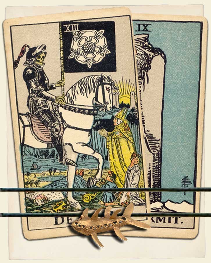 Death and The Hermit tarot combination gives you a hint about your near future, which is influenced by the arcane tarot forces of (A) TRANSITION and (B) INTROSPECTION. This indicates that you will be transitioning from an old phase to a new one. A cycle will end and this will lead you to new beginnings. Nothing ever happens like you imagine it will, but your inner guidance will be your mentor. Scrutiny yourself throughout this process, searching for the truth, reflect on your choices. In the end, you will be your own Cicerone, transitioning from an old you to a new one.