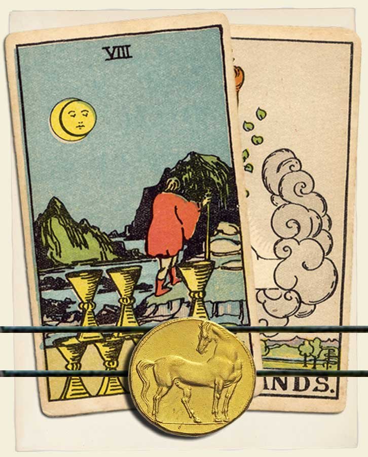 Eight of cups and Ace of wands combination indicates that mystic tarot forces: A) Abandonment (Eight of cups) and B) New Initiative (Ace of wands) are influencing you now. What is causing you so much pain right now? Think of the thing, as soon as you pinpoint it, recognize it and decide what to replace that thought with. Each time in the future that you find yourself thinking about the thing that bothers you so much, you need to catch yourself and replace it with something new that will be your new initiative. Soon, this exercise will not be so difficult anymore as you will find yourself forgetting about your problem and getting more excited about your new plans and initiative that you have decided to take.