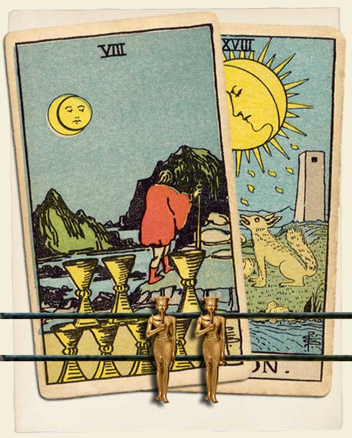 Oh man, Eight of cups and The Moon together are not a good sign for love and relationships. This tarot combination is warning us about setbacks and illusions guiding our decisions today. It’s time to break free from the fears and misunderstandings that have been holding us back in our relationships.