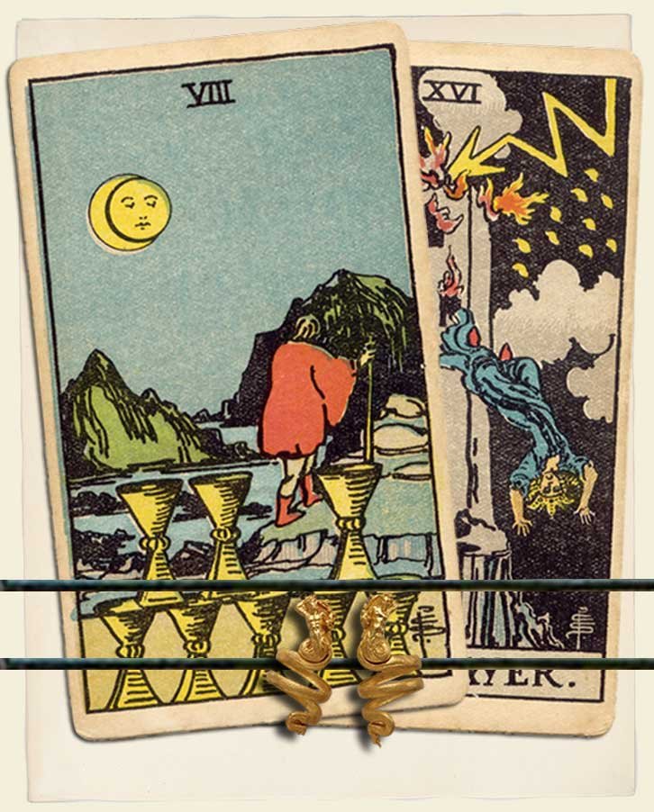 Oh, dear. The Eight of Cups and The Tower cards together for love and relationships is not a good sign at all. It means that you are dealing with two powerful forces: abandonment and upheaval. This could be because someone has left you or hurt you deeply, but it’s time to walk away from something that is toxic in your life.