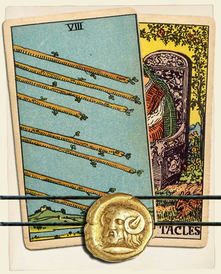 Here you can find the full lists of Eight of wands or Queen of pentacles combinations, that go before and after your current combo.Three combos per day keep worries away.