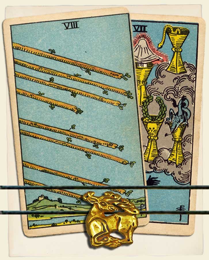 Eight of Wands and Seven of Cups combo interpretation