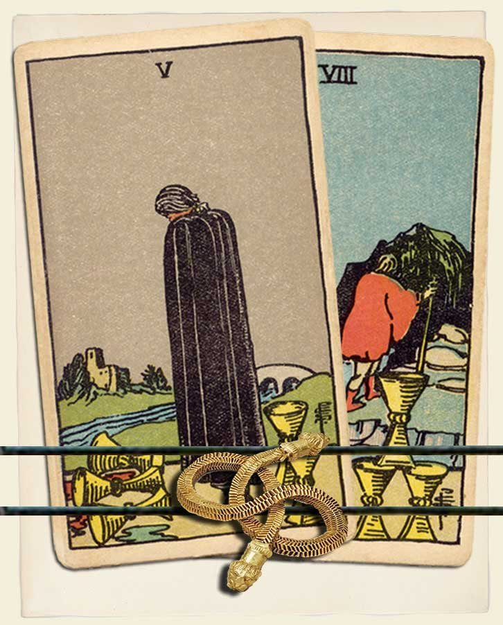 Five of cups and Eight of cups tarot combination gives you a better insight into a significant event in your future, which will come to pass from the combined effect of (A) LOSS (effect of Five of cups) and (B) DISAPPOINTMENT (effect of Eight of cups). You may have been counting on something happening, but it didn‘t. Maybe you were hoping for more than what happened or maybe you had unrealistic expectations about how things would turn out, but whatever the case was, this has left you feeling disappointed. Try not to dwell on it too much. This situation is over now so there is no sense in holding onto grudges that won‘t do any good anyway. Let go and move forward.