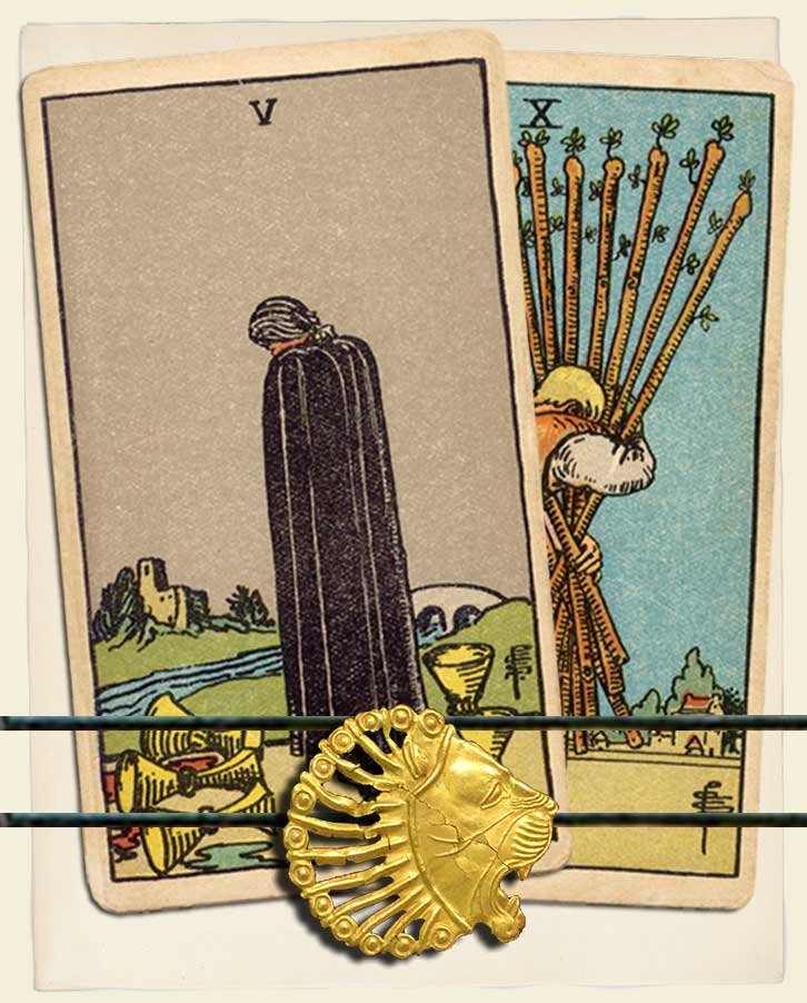 Five of Cups and Ten of Wands combo interpretation