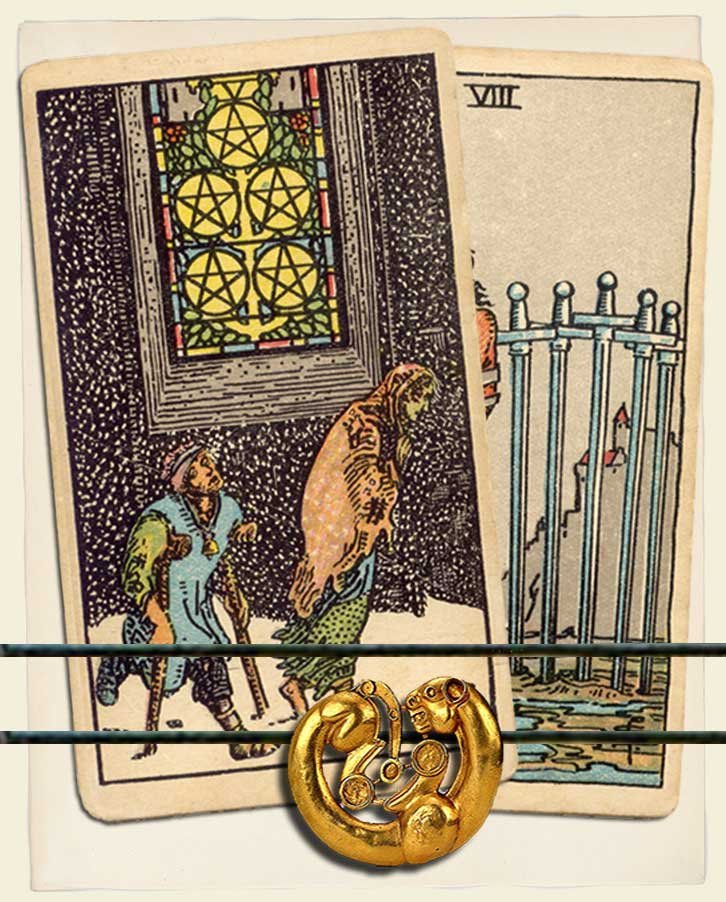 Five of Pentacles and Eight of Swords combo interpretation