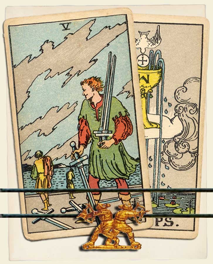 Five of swords and Ace of cups combination provides an insight into your near future, which is directed by the guiding influences of (A) Disagreements and (B) Love. What’s the advice of this pair? The Five of swords represents high levels of conflict that can be difficult to resolve. This card indicates that there may be some kind of disagreement in your life. The Ace of cups represents a new beginning under which love will flow freely. In combination with the Five of swords, this indicates that you are at risk for discord around a relationship or other important project in your life. Take steps to address any issues before they escalate out-of-control, so they don’t derail whatever plans you have made together.