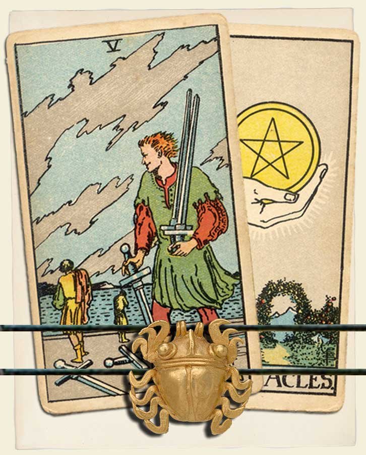 Five of swords and Ace of pentacles together gives an insight into your medium-term future, which is directed by the tarot forces of (A) Aggression and (B) A New Financial Or Career Opportunity. In other words, it means leaving the current situation for a new one. The current is abusive: they are using you, and have an aggressive work place environment that is not healthy. The new opportunity will be more supportive and help you heal and grow. You will find a peace that you haven‘t had for a while.