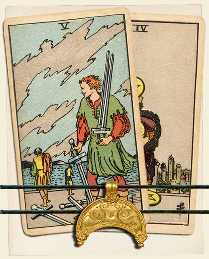 Five of swords and Four of pentacles combination means that two forces: 1) Aggression and 2) Conservatism govern your life decisions today. Most tarot readers would consider this as in your relationships, people and your interests are at odds. You realized that they were attacking your rights and always wanted to do what they wanted. You said you didn’t want to talk for a while and withdrew yourself. In about 5 minutes you will experience events that will help you get out of this mood.