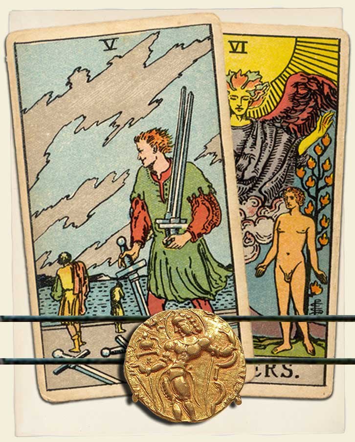 Well, my dear, when it comes to the Five of Swords and The Lovers combination in love and relationships, we have a bit of a mixed bag here. On one hand, The Lovers is simply divine – the best card in the Tarot deck for love. It exudes passion, vitality, sexual intensity and long-term happiness. If you’re lucky enough to be experiencing a new relationship under this influence, then all facets of this gem are enhanced – feel that desire and let it give you a burst of energy to build something truly amazing with your special someone.