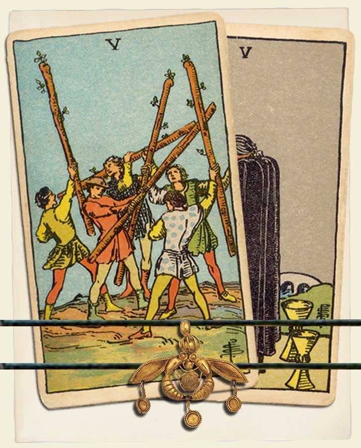 Five of Wands and Five of Cups combo interpretation
