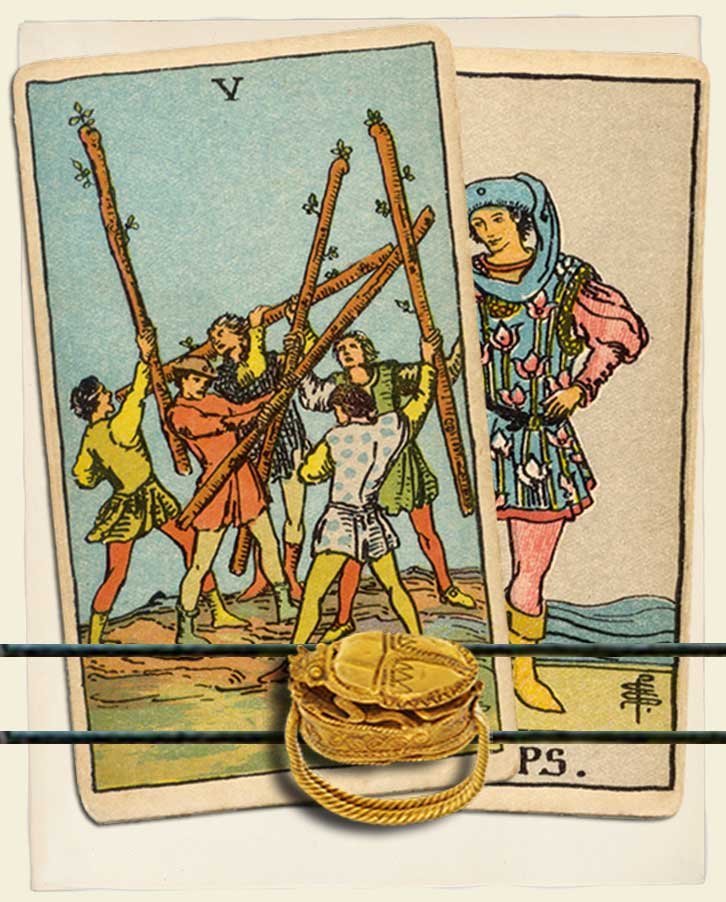 Five of wands and Page of cups combination is a sign that two tarot influences: (1) Tension and (2) Sensitivity (influence of Page of cups) currently guide your decisions. To put it differently, it means that it is a good time to pause before jumping to conclusions. Even though life can offer its fair share of conflicts, you are being reminded not to assume other people’s intentions. Remember to pick your battles before entangling yourself in unnecessary challenges (in work and relationships).