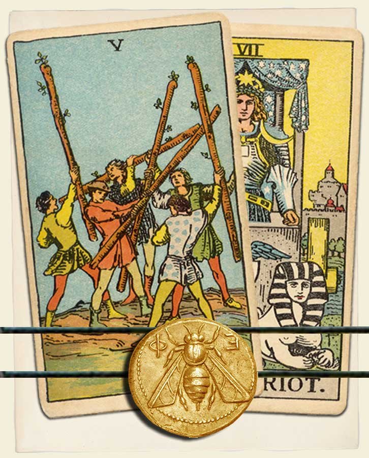 Five of Wands and The Chariot combo interpretation