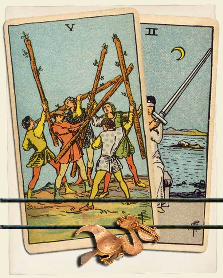 Five of Wands and Two of Swords combo interpretation