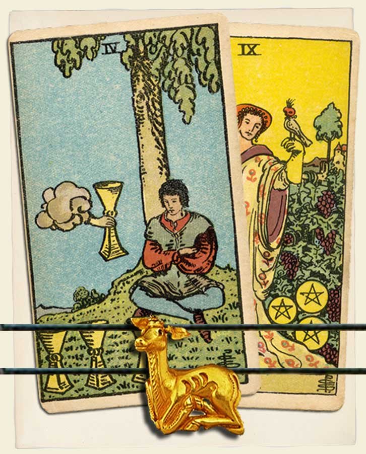 Hey there, Combotarot Nation! Today we’re talking about the Four of cups and Nine of pentacles combination in regards to love and relationships. Now, this combo is considered neutral overall, but let’s break it down a bit more.