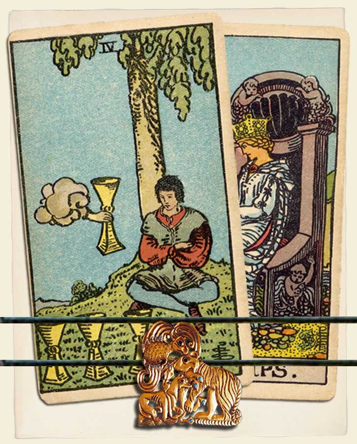 Four of Cups and Queen of Cups combo interpretation