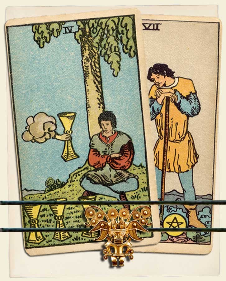 Here you can find the full lists of Four of cups or Seven of pentacles combinations, that go before and after your current combo.
