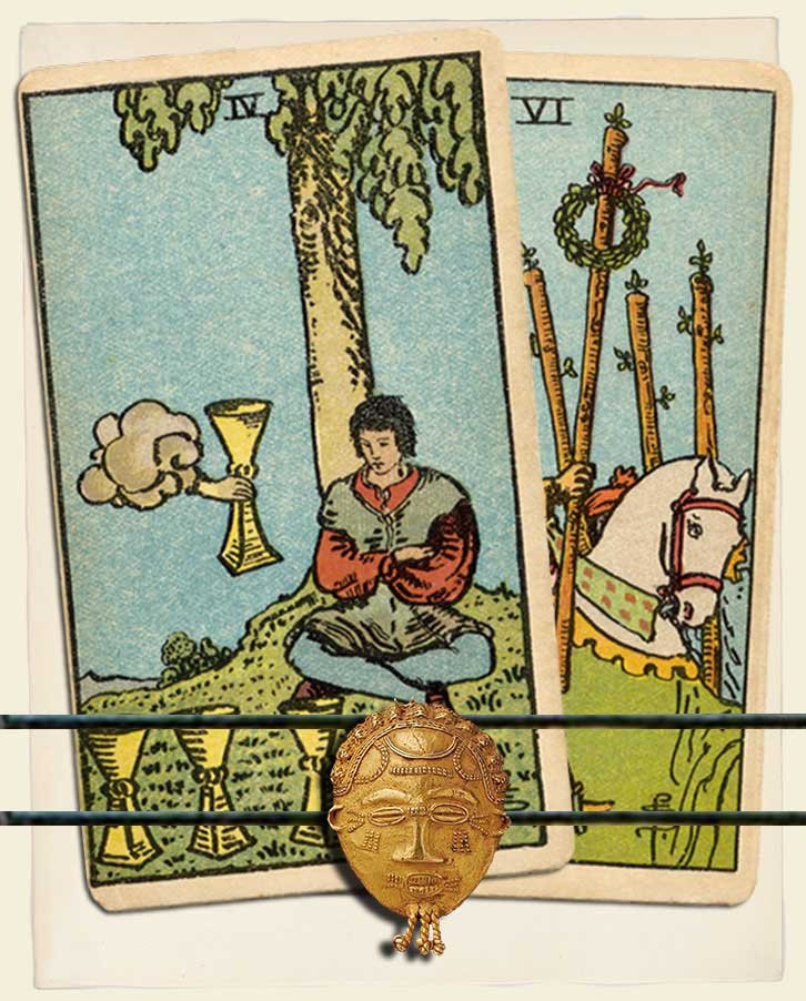 In conclusion, the Four of cups and Six of wands combination indicates that you may need to take a step back from your current situation and re-evaluate things. Don’t let apathy get in the way of recognizing all the support around you, but also don’t be overly confident or unapproachable when it comes to matters of love. Strive for balance, my dear!