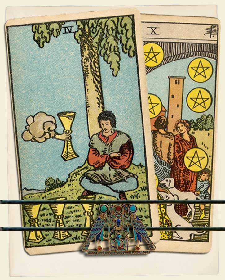 Are you feeling a bit bored in your relationship? Are you also concerned about financial security? If so, the Four of cups and Ten of pentacles tarot combination might be speaking to you. This neutral sign for love and relationships indicates that these two arcane dynamics are influencing your life today.
