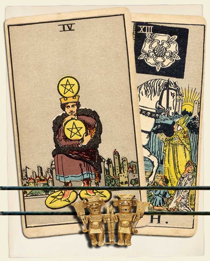 Hey guys! So, today we’re talking about the Four of Pentacles and Death combination in love readings. And let me tell you – it’s not looking too good.