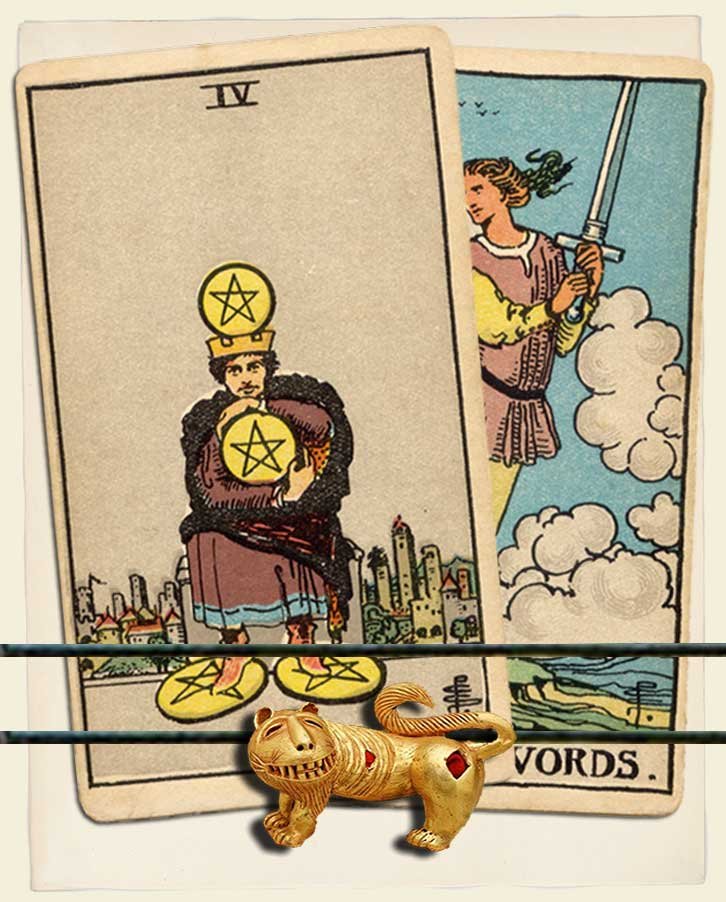 Four of Pentacles and Page of Swords combo interpretation