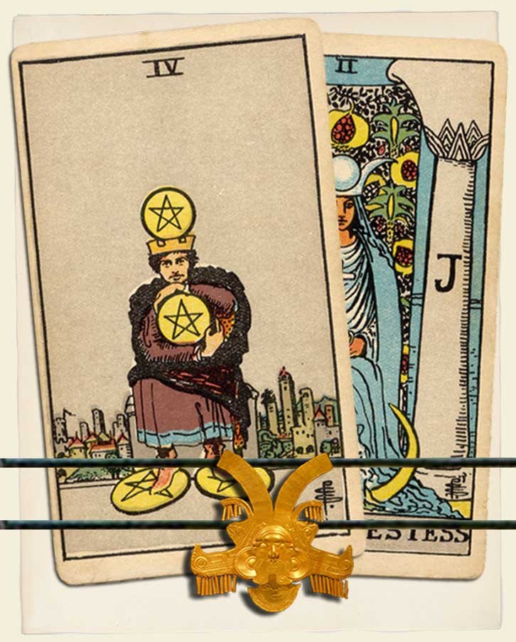 Hey guys, it’s Gloria Wilson and today we’re going to be talking about the Four of Pentacles and The High Priestess tarot combination for love and relationships. Now, this is considered an unsure sign. Here’s why.
