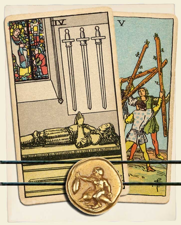 Four of swords and Five of wands combination provides an insight into your near future. It is influenced by the arcane forces of (A) RELAXATION and (B) CONFLICT. Do you feel like you really need a break? Every time you want to sit and relax, then boom a new conflict presents itself and you must go fend to that problem. It’s normal we all feel that way sometimes. The thing is, that life doesn’t guarantee that we will ever be in a position where we have nothing to worry about and therefore, we can relax. That’s why your relaxation should not depend on not having any conflicts at all. You’re being a wishful thinker. Relaxation is an option. Choose it. You really need it at this point in your life and you shouldn’t continue postponing your relaxation just because you have another conflict to solve.