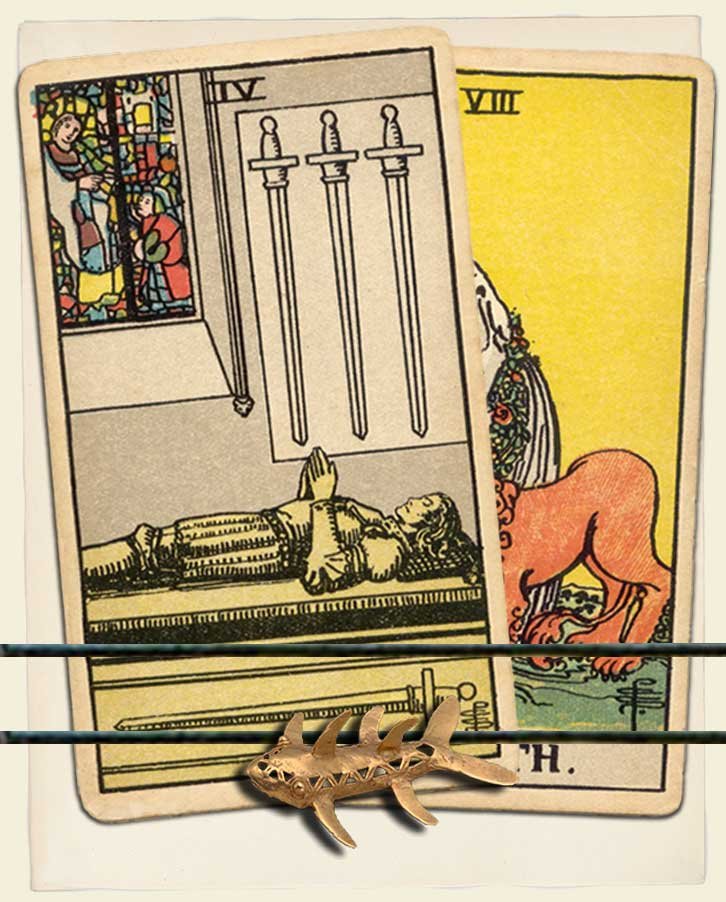 Well, darling, when it comes to love and relationships, the Four of Swords and Strength combination is a bit of an unsure sign. You see, these cards give us a glimpse into our medium-term future which is influenced by the tarot forces of relaxation and influence. It’s all about taking a step back and reevaluating your approach.